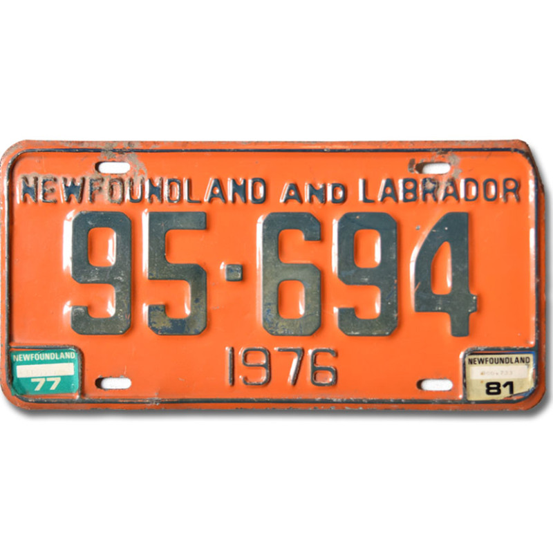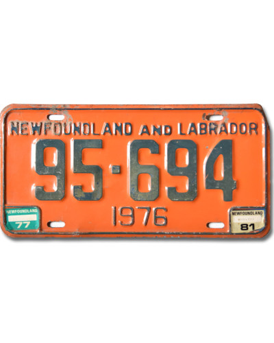 Kanadská ŠPZ Newfoundland Labrador 1976 Orange 95-694