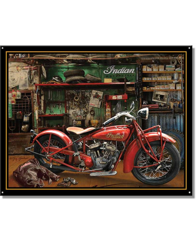 Plechová ceduľa Indian Scout in Garage 40 cm x 32 cm